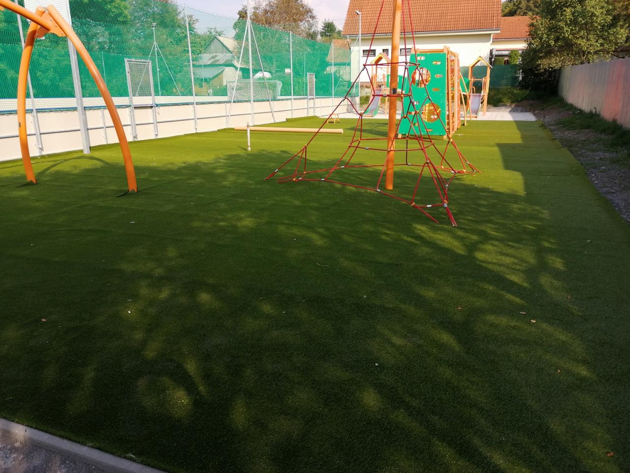 Športový areál ohraničený mantinelmi a ochrannými sieťami je určený na rôzne druhy športov – futbal, volejbal, nohejbal, basketbal a tiež tenis. Pri futbale by hráči mali používať vhodnú obuv – turfy, prípadne halovú obuv. Iná obuv znehodnocuje povrchovú vrstvu – trávnik, preto verím, že budete toto nariadenie striktne dodržiavať. V prípade tenisu, volejbalu a nohejbalu sú na obecnom úrade k dispozícii stĺpy a siete.